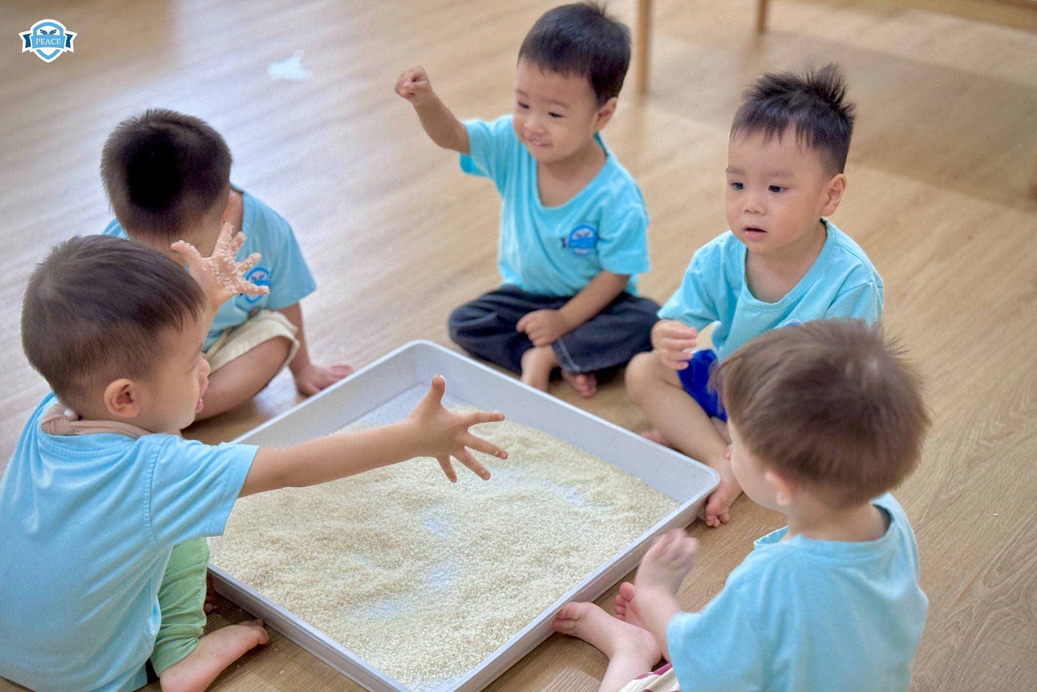 Peace School tin rằng, học tập bắt đầu từ những điều nhỏ bé, từ một khay gạo, một gam màu và cả ánh mắt sáng lấp lánh khi bé tự mình khám phá để lớn khôn mỗi ngày. ![]()